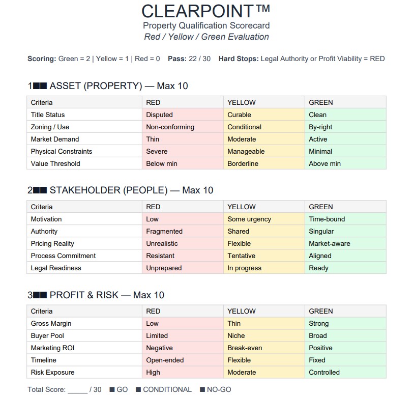 ClearPoint Land Advisory is an advisory-first land evaluation business focused on helping clients make informed land decisions.